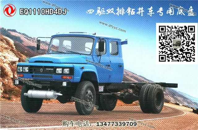 東風(fēng)尖頭四驅(qū)雙排越野鉆井車詳細配置:采用東風(fēng)EQ1110HD4DJ型原廠四驅(qū)越野底盤,尖頭雙排座駕駛室,玉柴160馬力正宗國四發(fā)動機,五檔變速箱,3.5噸前驅(qū)動橋,后十噸東風(fēng)德納車橋,232mm(6+5)雙大粱,輪胎為9.00R20鋼絲胎。