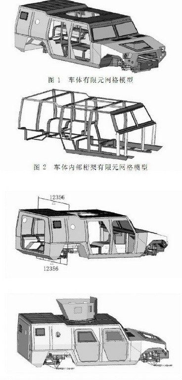 上圖是1代猛士裝甲車車身結(jié)構簡圖(由于長軸2代猛士仍然處于測試狀態(tài),引用1代猛士裝甲車結(jié)構進行比對說明),為了提升整車鋼性以及安全防護能力,上部分的車身焊接采用單獨全封閉結(jié)構(側(cè)圍、頂蓋、地板預先焊裝一體)。在A/B/C/D柱之間焊裝多條加強筋保證縱向結(jié)構強度。與美軍現(xiàn)役悍馬裝甲車(通過對基型車換裝裝甲板)不同的是,1代猛士裝甲車原廠狀態(tài)就采用可防護7.62毫米口徑穿甲彈在100米內(nèi)全向攻擊、12.7毫米口徑機槍彈正面攻擊、3公斤TNT當量爆炸物地面攻擊、以及105毫米口徑榴彈破片50米內(nèi)攻擊的均質(zhì)裝甲板。