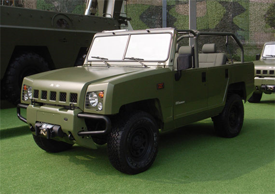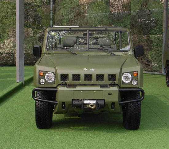 2007年8月2日,北汽控股公司在位于北京市順義區(qū)的北京汽車制造廠有限公司隆重舉行慶祝建軍80周年暨北京·勇士下線儀式。北汽勇士BJ2022型4×4軍用越野車自2007年列裝部隊(duì)以來(lái),“勇士”越野車作為我軍第二代軍用指揮車,常年活躍在演訓(xùn)場(chǎng)上和邊防線上。2008年、2009年北汽勇士軍用車參加并圓滿完成汶川地震搶險(xiǎn),打擊暴恐勢(shì)力等多次重要軍事行動(dòng)!坝率俊笔怯杀本┢囍圃鞆S有限公司自主開(kāi)發(fā)的,擁有完全自主知識(shí)產(chǎn)權(quán)的中國(guó)21世紀(jì)0.5噸/0.75噸級(jí)越野車!坝率俊蓖獠吭煨褪窃谘芯苛藲W、美、日三大流派越野車造型發(fā)展趨勢(shì)的基礎(chǔ)上,結(jié)合中國(guó)文化特色和中國(guó)越野車的特點(diǎn)而設(shè)計(jì)的,具有原創(chuàng)性。