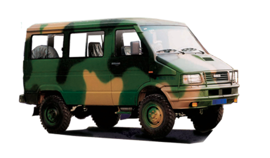 NJ2045軍用越野車屬我國(guó)二代軍車中的1.5噸級(jí),其原型車是意大利依維柯防務(wù)車輛分部生產(chǎn)的軍用40.10WM輕型支援車(4x4), 由躍進(jìn)汽車集團(tuán)公司(南京汽車制造廠)引進(jìn)意大利IVECO技術(shù)生產(chǎn);底盤、發(fā)動(dòng)機(jī)、變速器等采用意大利原裝進(jìn)口件,采用短頭型駕駛室,配備76kW渦輪增壓直噴柴油發(fā)動(dòng)機(jī),歐2排放標(biāo)準(zhǔn)。驅(qū)動(dòng)方式為 4×4,前后驅(qū)動(dòng)橋帶差速鎖、前盤后鼓式剎車系統(tǒng),主副油箱、強(qiáng)冷啟動(dòng)裝置。最大爬坡度不小于60度,最小轉(zhuǎn)彎直徑不大于12米,涉水深度不小于750毫米,越壕深度不小于650毫米。百公里油耗不大于13L,最高時(shí)速不小于100公里/小時(shí),自重3噸,載重1.5噸,分動(dòng)器采用了鏈條傳動(dòng)的型式,具有抗過(guò)載的能力。單桿操縱的博格-華納分動(dòng)器,高檔速比為1:1,低檔速比為1:2.74。南京產(chǎn)索菲姆8142.43型增壓中冷柴油機(jī)給這兩款車帶來(lái)源源不斷的動(dòng)力。87kW的最大功率產(chǎn)生于3600r/min,而1900r/min時(shí)就具備了269Nm的最大扭距。