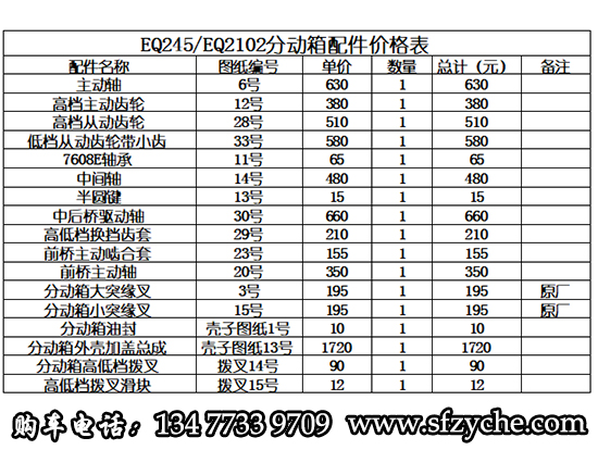 東風(fēng)軍車(chē)EQ245/EQ2100E/EQ2100E6D六驅(qū)軍車(chē)分動(dòng)箱配件報(bào)價(jià)表