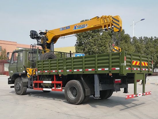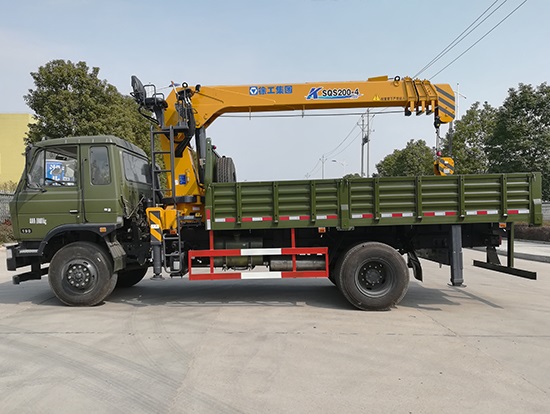 3. 采用徐工8噸直臂吊機,徐工原廠SQS200型直臂吊機,四節(jié)臂,舉升高度13.5米,工作半徑11.5米,最大起升質(zhì)量8噸,360度全液壓,全回轉(zhuǎn),選裝徐工原廠高空操作座椅上操作,徐工雙腔液壓后支腿,車廂4.8米標準大箱。